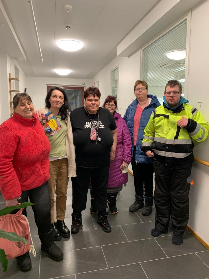 Marja Lindberg (SFP) stöder vår kampanj om att inte skära ner i funktionshinderservicen. Med på bilden är även Carin, Ritva, Marianne, Ann-Catrin och Henrik från Steg för Steg i Närpes.
