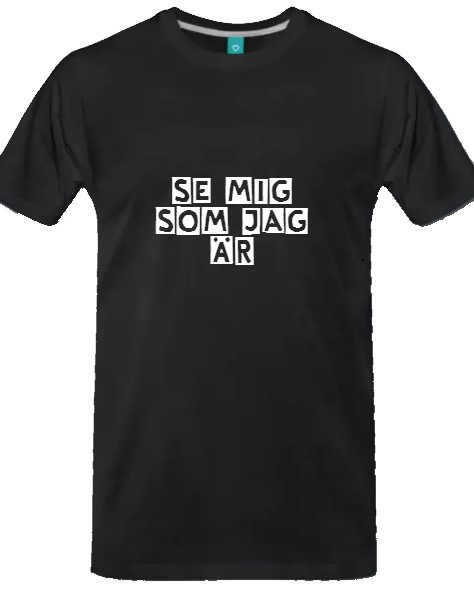 Här kan du beställa våra t-skjortor och tubhalsdukar, med texten "Se mig som jag är".
