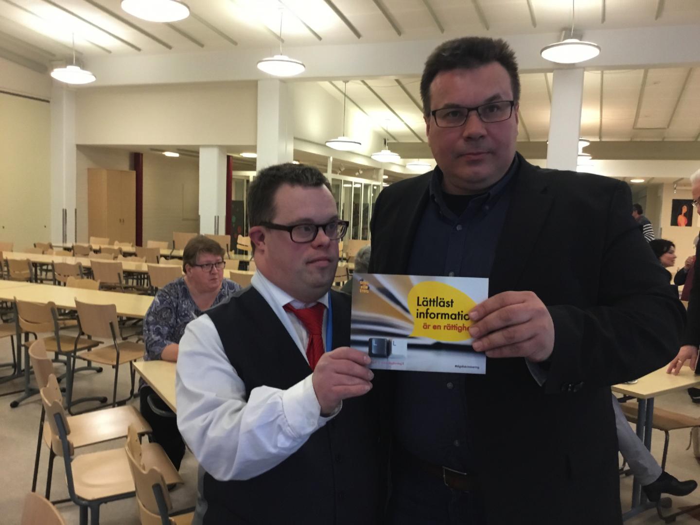 Niclas Sjöskog (SFP) från Pedersöre stöder vår kampanj. Med på bilden är även Jonas Jansson från Steg för Steg.